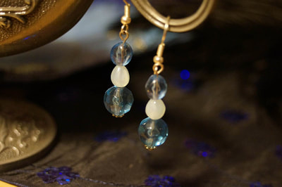 Add a touch of elegance to your evening with these beautiful, handcrafted, Ocean Droplets Earrings. Shimmering shades of blue gems with silver findings. £10.45
