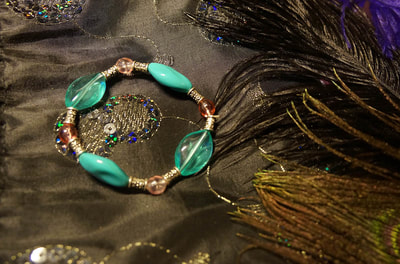 Slip into the sunset forest with this lovely bracelet, reminiscent of an evening in the forest as the sun is setting. Beautiful green and orange beads compliment each other along with silver coloured findings. £8.65