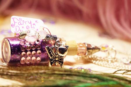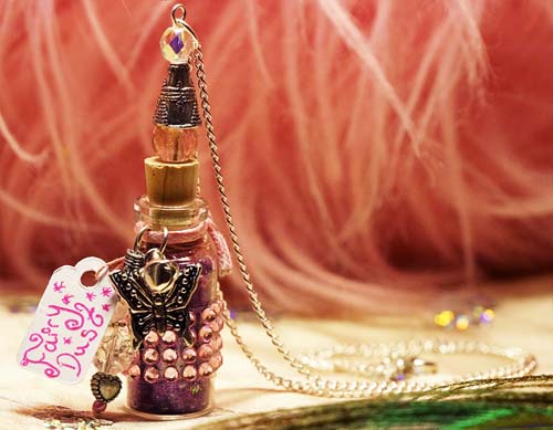 little glass bottle contains sparkly fairy dust. The bottle is